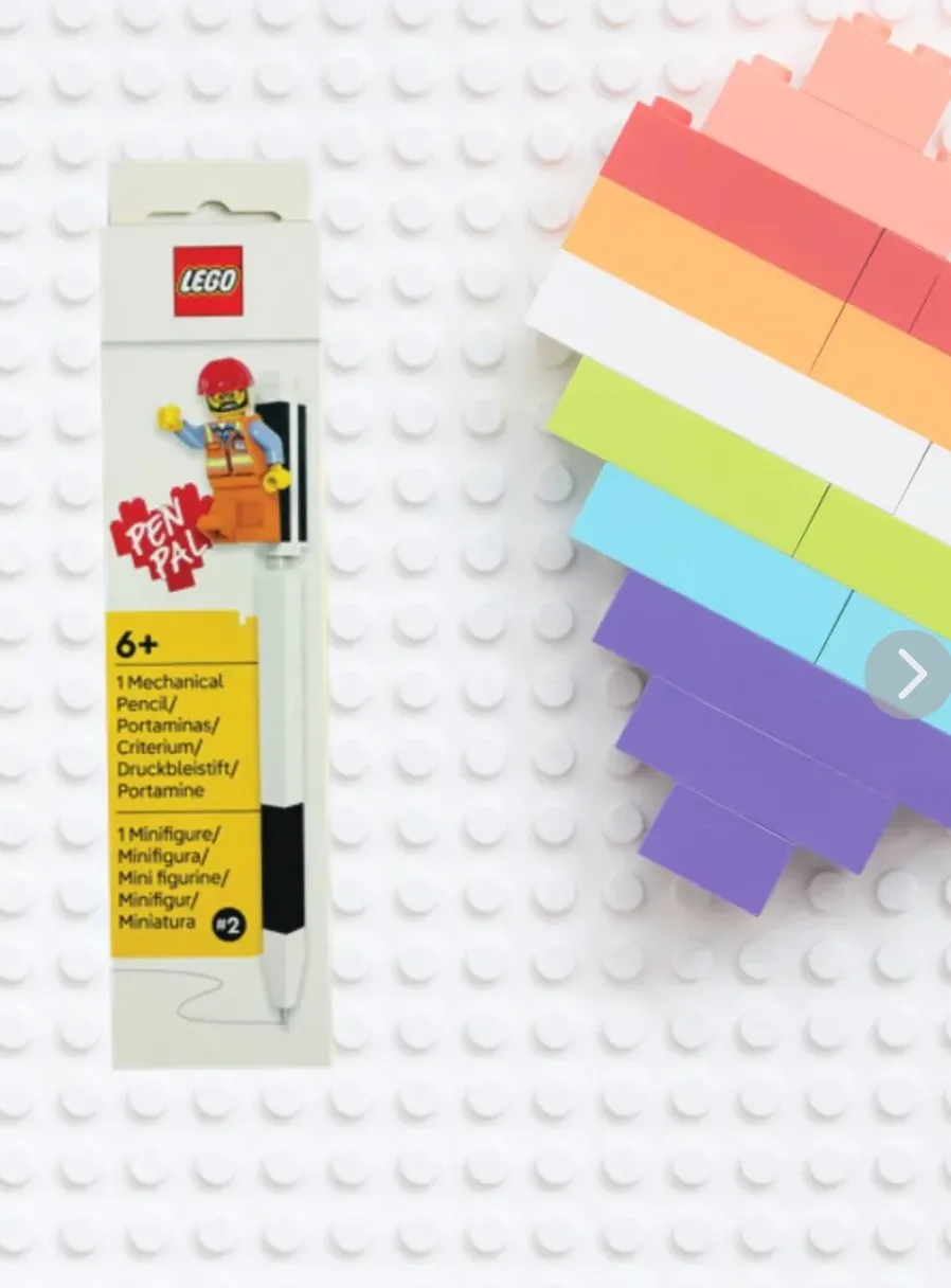 Kit escolar: Lápis escolar com apontador, borracha + Minifigure Lego